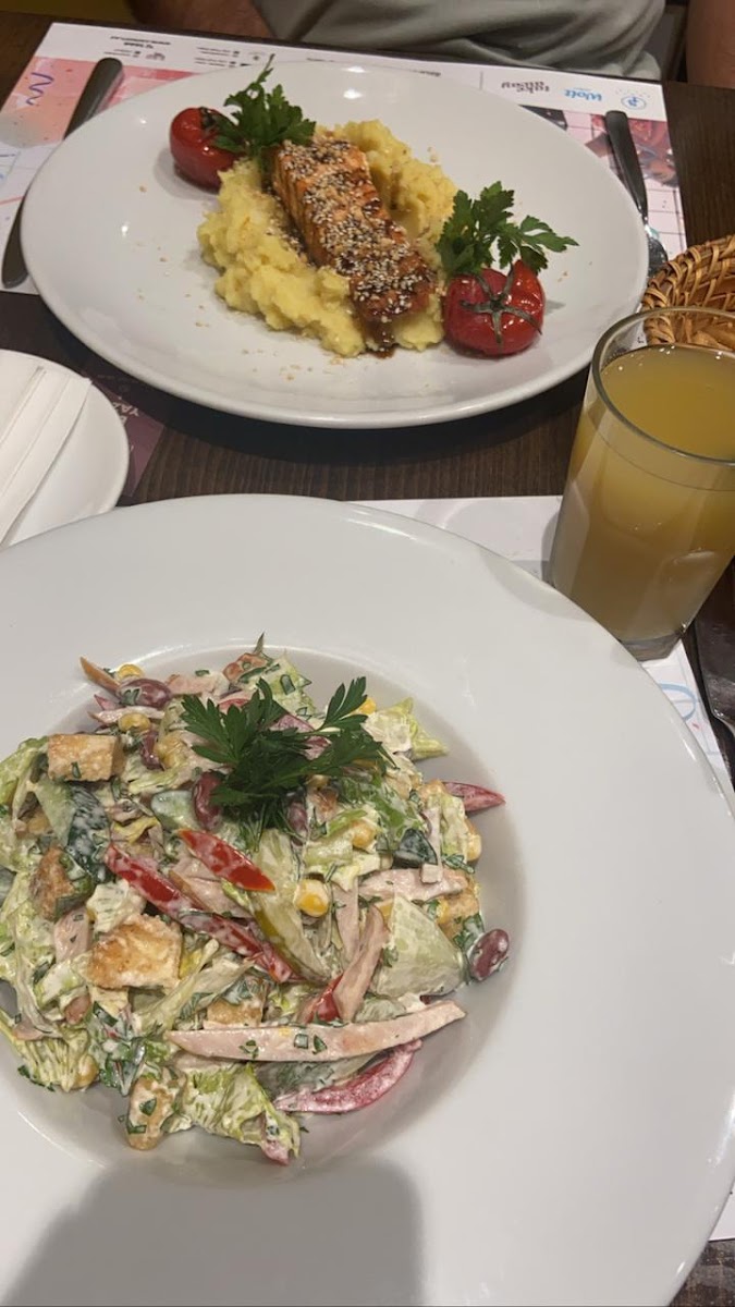 Another customer, Dilara Bakh, found solace from the mall’s noise in the café's nicely arranged spaces, particularly enjoying their salads—a testament to the freshness found in their menu choices. In contrast, Sabina Gulamaliyeva shared a less favorable experience regarding a particular dish and the availability of phone charging solutions, emphasizing the need for attentive service throughout the dining journey.